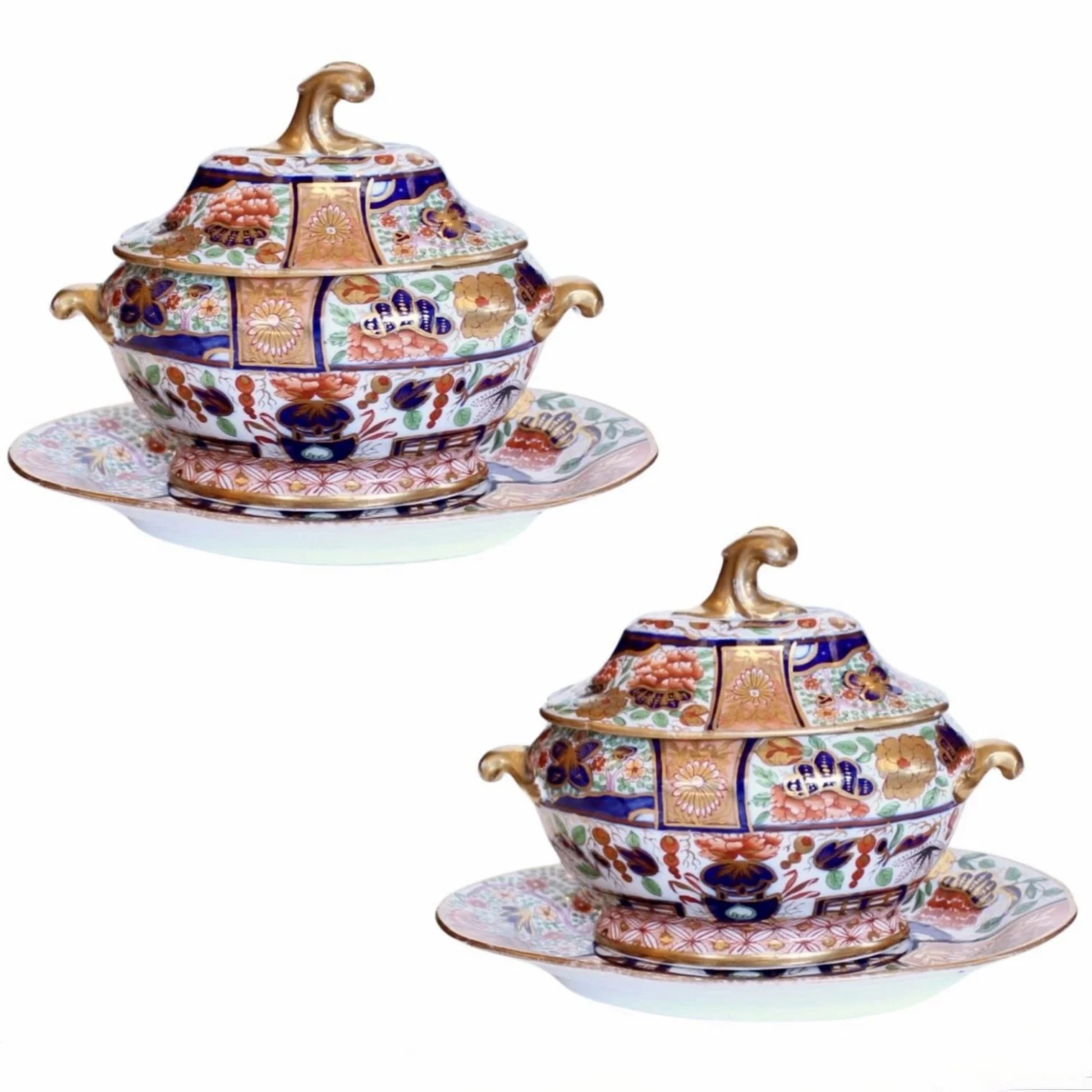 Pair of Exceptional Early English Gilt Imari Sauce Tureens